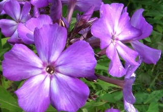 Цветок диаметром 4,0-4,2 см; неравномерно сиреневый с белым центром Лепестки отделены один от другого. Соцветире округло-коническое, среднего размера, рыхловатое. Куст высотой 60-80 см, компактный, прямостоячий, прочный. Зимостойкий, устойчивый к грибным болезням сорт. Срок цветения средний; цветение продолжительное. (Наша редакция).