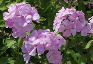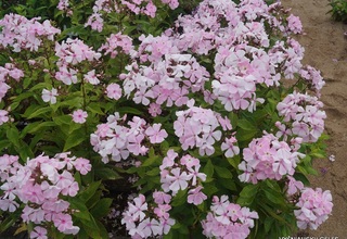 Цветок диаметром 5,2-5,5 (до 6,0) см; нежно-розово-сиреневый с прожилками и небольшим высветлением в центре. Соцветие округло-коническое, небольшое. Куст высотой 75 см, компактный. Срок цветения среднеранний. (Из каталога Секции, изд.: 2010, 2014).