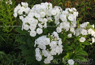 Цветок колесовидной формы диаметром 3,0-3,5 см; белый с салатовым отсветом в зеве. Трубка цветка салатовая. Соцветие округло-коническое, очень большое, плотное. Куст высотой 80 см, компактный, прочный. Листья тёмно-зелёные. Устойчивый к грибным болезням сорт. Срок цветения среднеранний; цветение продолжительное. (Из каталога Секции, изд. 2014).