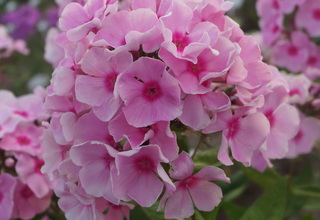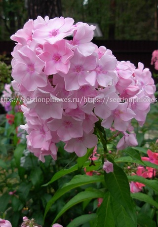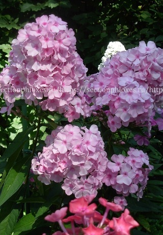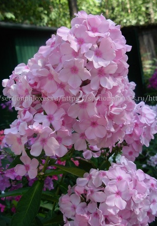 Цветок диаметром 3,5-3,8 см; светло-розовый, в саду словно светится (как будто перламутровый), с тёмно-розовым колечком. Соцветие красиво сложенное, округло-коническое, достаточно большое, плотное. Куст высотой 80 см, компактный, прочный. Зимостойкий, устойчив к грибным болезням. Срок цветения средний; цветение продолжительное. (Из каталога Секции, изд. 2014 с редакцией).