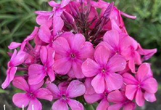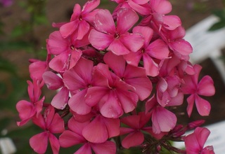 3,0-3,2; 75-80; С. Цветок колесовидно-звёздчатой формы, лепестки разделены, насыщенно карминно-розовый с малиновым глазком и такими же тенями. Соцветие большое, округло-коническое, ветвистое, красиво сложенное, плотное. Куст прочный, мощный, быстро разрастается. Цветение обильное и продолжительное. Назначение универсальное. (Описание автора).