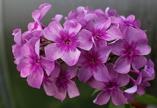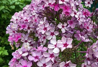 3,7; 80-90; С; Пурпурный дымчатый флокс. Соцветие большое средней плотности. Дымка проявляется сразу. Не портится от дождя. (Описание автора).