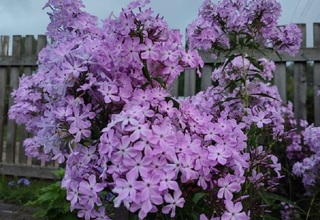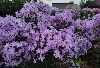 Цветок звёздчатой формы, диаметром 1,5-2,0 (до 2,4) см; светло-сиреневый. Соцветие крупное, рыхлое. Куст высотой 80-100 (до 120) см, хорошо разрастается. Срок цветения средний. (Наша редакция).