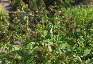 Соцветие пирамидальное, светло-зелёное, по мере цветения темнеет до бурого; рыхлое, мягкое, мелкоигольчатое без цветков; состоит из окрашенных игольчатых прицветников, имеет несколько колючий вид. Куст высотой 80-90 (до 110) см, компактный, прямостоячий, прочный. Стебли крепкие. Устойчивый к грибным болезням сорт. Срок цветения средний; цветение продолжительное. (Наша редакция).