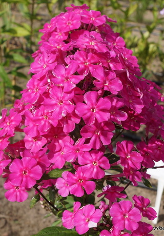 Размер цветка 2,0-2,3 см, высота куста 80 см, срок цветения среднепоздний. Розово-пурпурный, матовый, с небольшой светлой звёздочкой в центре цветка (не проявляется в жаркую погоду). Характерная форма цветка с продольно волнистыми лепестками. Соцветие большое, ветвистое, довольно плотное. Куст крепкий, стебли прочные, с узкими листьями. Цветение обильное, но не очень продолжительное. Разрастается медленно. (Современный ассортимент флокса метельчатого, выпуск 1).