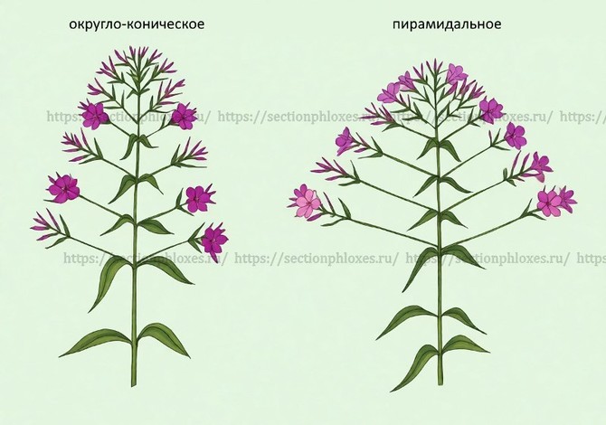 Пирамидальное соцветие – ширина (диаметр) больше высоты.