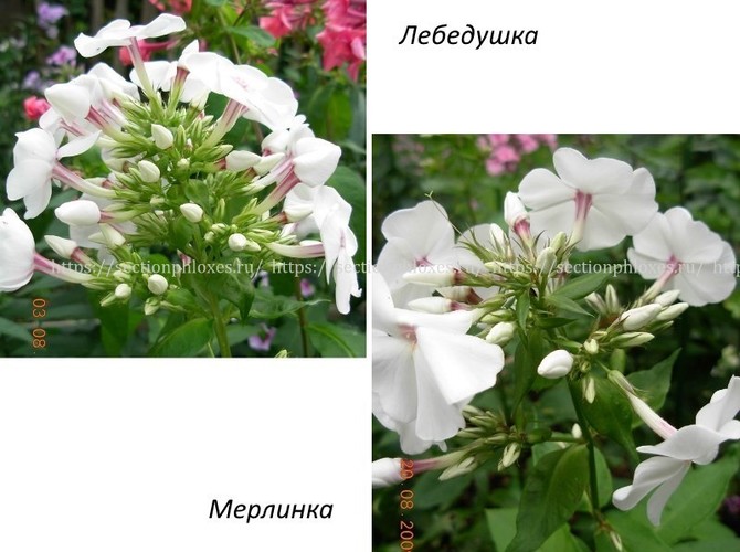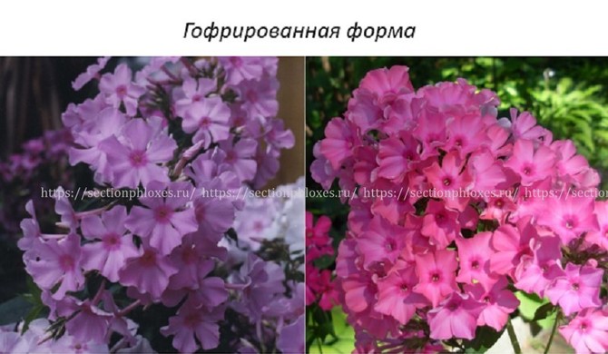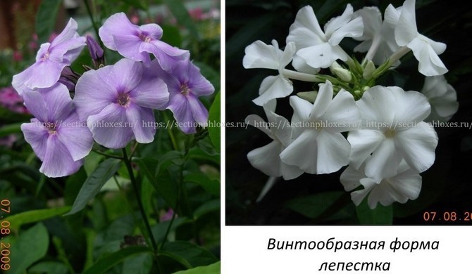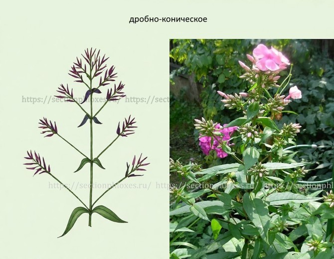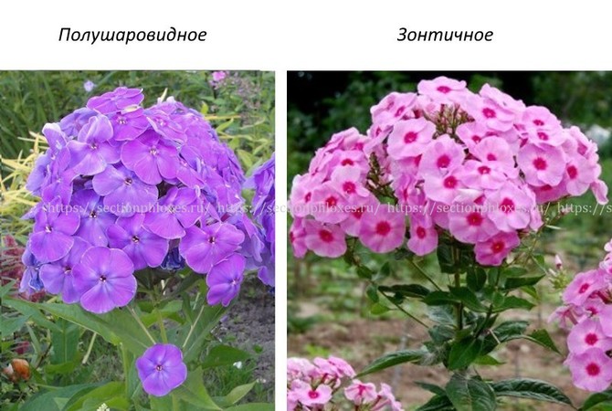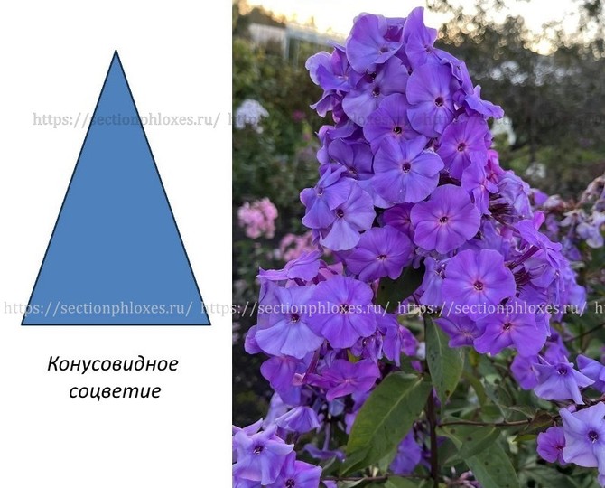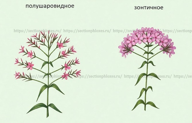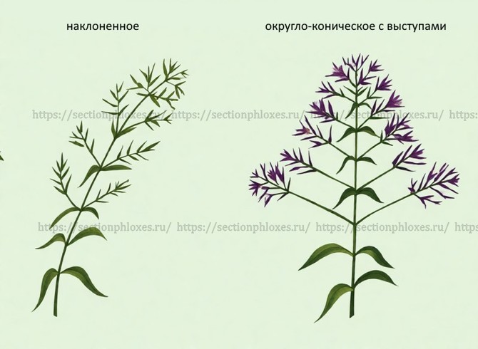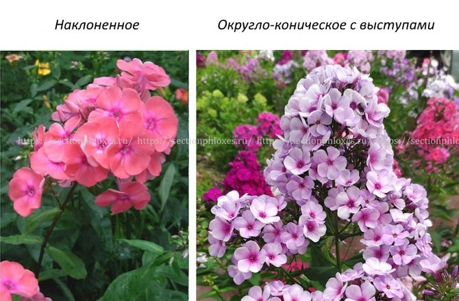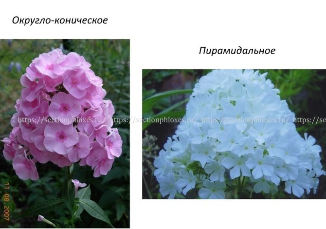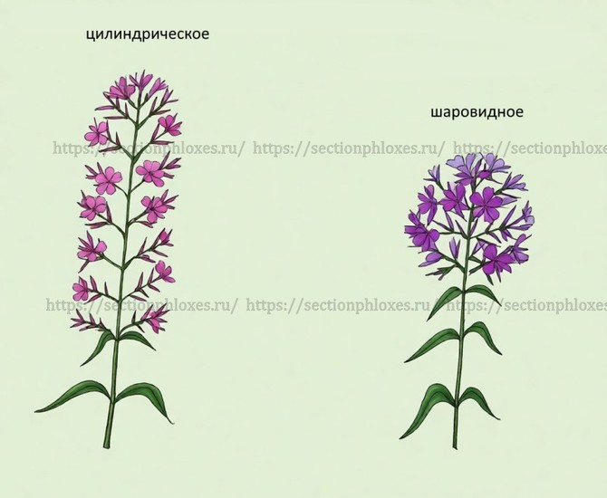 Цилиндрическое соцветие имеют сорта флокса макулята ('Дельта', 'Розалинде', 'Соната', 'Шнеелавине' и др.).