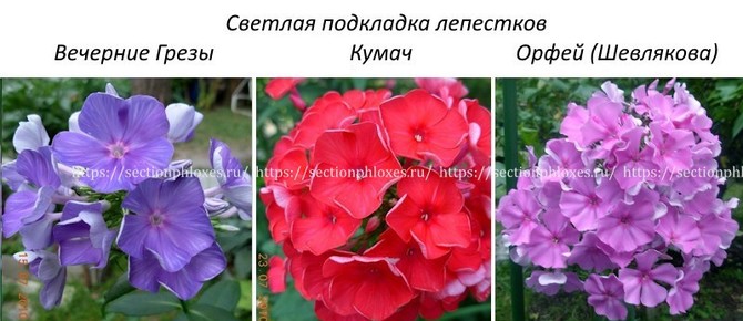 Есть сорта, у которых может быть белая или светлая подкладка лепестков ('Орфей', 'Кумач', 'Вечерние Грезы'). Иногда частично.