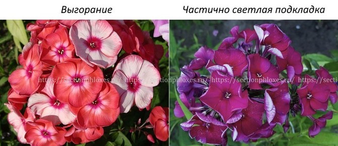На солнце цветки флоксов могут выгорать. Особенно часто это встречается у сортов с яркой или темной окраской ('Жар-Птица', 'Радость Жизни').